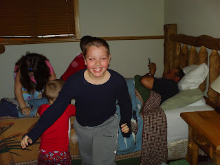 Well we had another great weekend. This weekend we went to Grand Bear Lodge for the grand kids Christmas gift from my mom and dad. On Friday, we left right after work and went to Monticello to get Angel and then headed on our way. The kids did great in the van. They each had their own game system and headphones. I have found that headphones are my new best friend. I didn't hear any complaining about someone's game being to loud or that they couldn't hear their own. Tyler even watched a movie with Headphones. Did I mention that I love the headphones. It only took us about 2 hours to get there. We were the first ones there, other than mom and Nicole who went early to get everything set up. Everyone else came shortly after. Once everyone got there we had to figure out sleeping arrangements. Travis and Heather got the room upstairs with Lexi and Keagan and of course Maddie. Mom and Dad had the room with two beds and dad slept with Patrick and mom got a bed all to herself. Taylor, Angel, Tyler, Nicole, Trevor, and I got the room with the bunkbeds. Taylor and Angel got the top bunks. Tyler and I shared a full size bed and Trevor and Nicole got the other full size bed. Friday night I could of sworn I was sharing a room with 5 children. Trevor and Nicole were having a lot of fun with the kids.